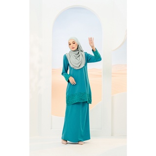 Baju kurung moden warna biru turqoise lace fesyen wanita pakaian .
